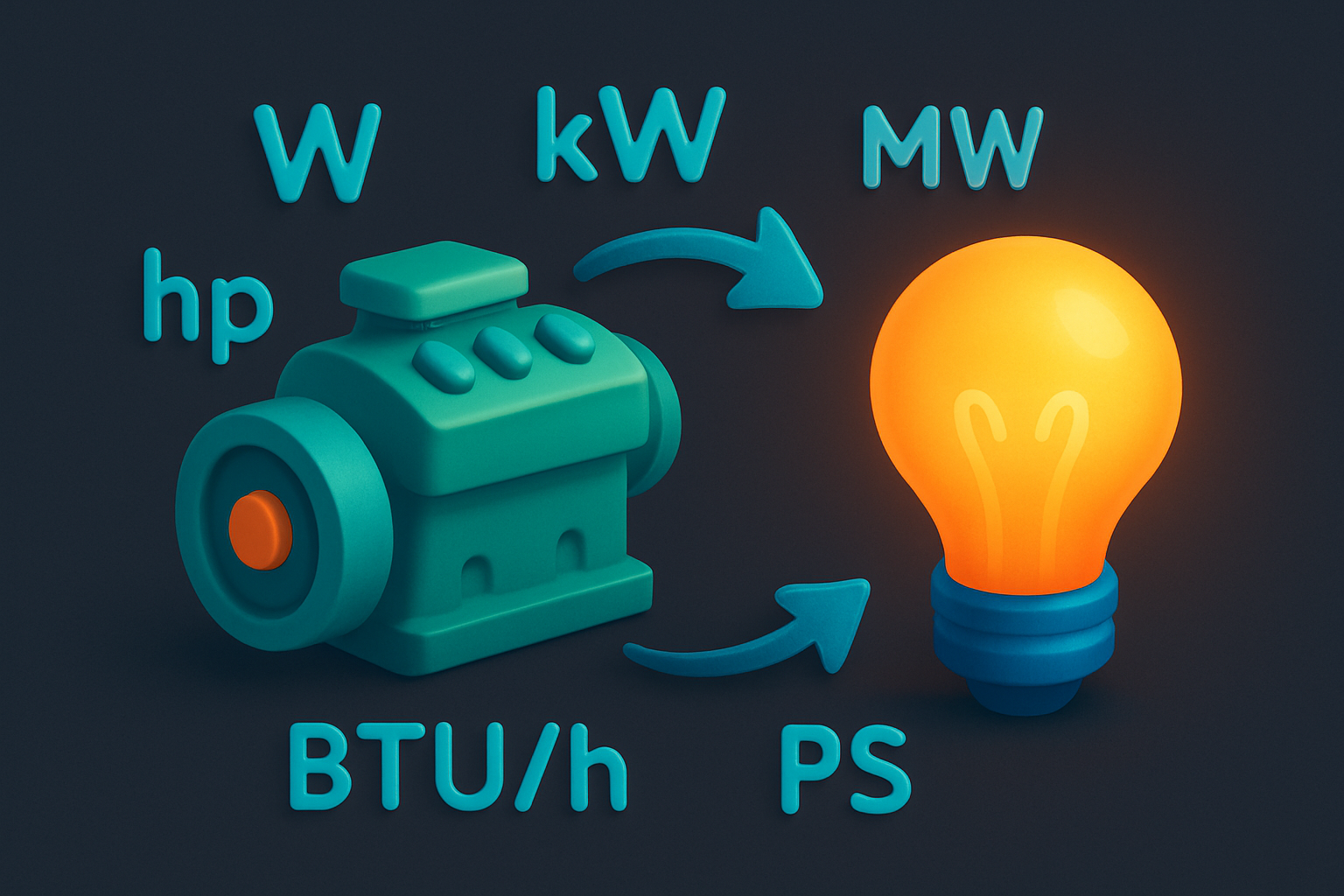 Convert between watts, kilowatts, megawatts, horsepower, PS, BTU/h, and ft-lbf/s.